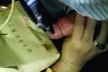 Взрослая женщина трогает член в автобусе